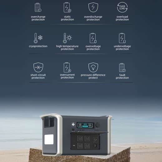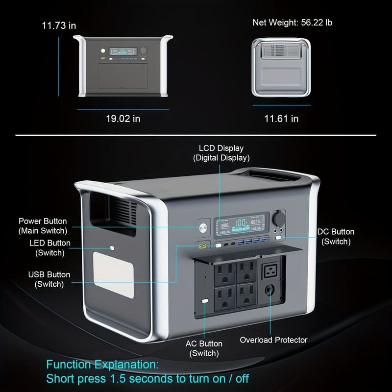 High-capacity 2400W portable power station with a durable 2048Wh LiFePO4 battery, fast charging, AC outlets, and solar compatibility—ideal for camping, RVs, and emergency home backup.