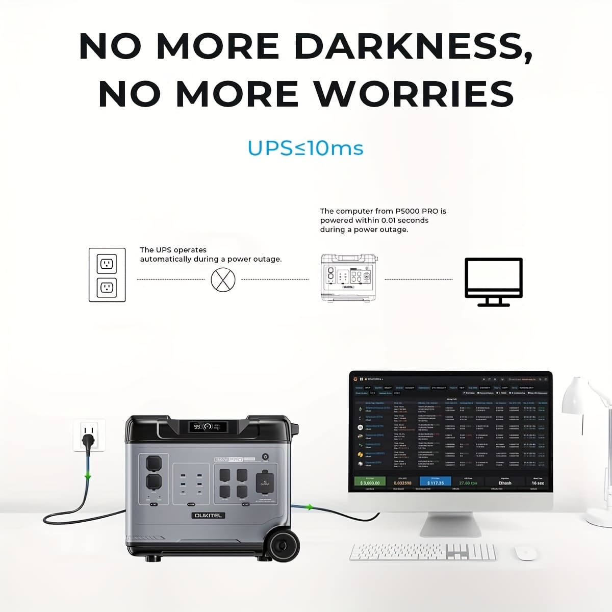 P5000 PRO Portable Power Station 3600W 5120Wh Solar Generator with LiFePO4, Dual-Power (/) Backup, 30A/120V AC Outlets, Heavy-Duty for Home, RV, Camping, Power Outages, Smart Display & Quiet Operation (Solar Panel